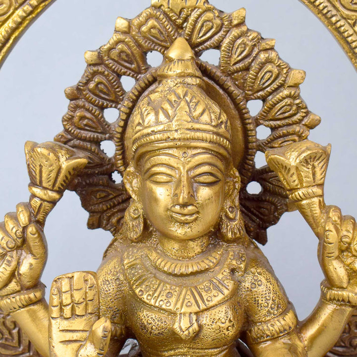 8.7 Inch Exquisite Pure Brass Goddess Lakshmi with Prabhaval Idol