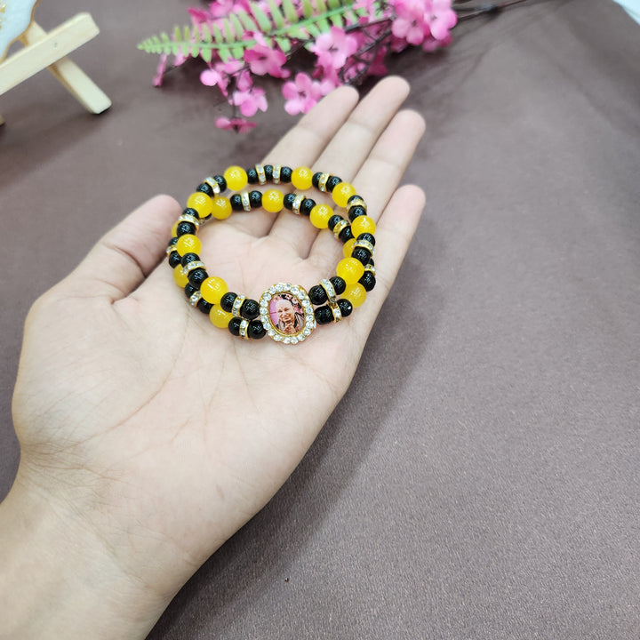 Black And Yellow Round Pearl Bracelet with Jai Guruji Swaroop Handmade Bracelets for Men and Women