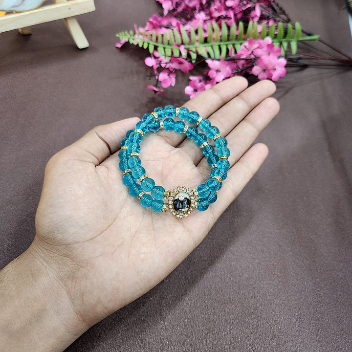 • Item Name:  Blue Round Pearl Bracelet with Jai Guruji Swaroop Handmade Bracelets for Men and Women