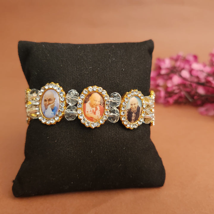Crystal Round Pearl Bracelet with Jai Guruji Swaroop Handmade Bracelets for