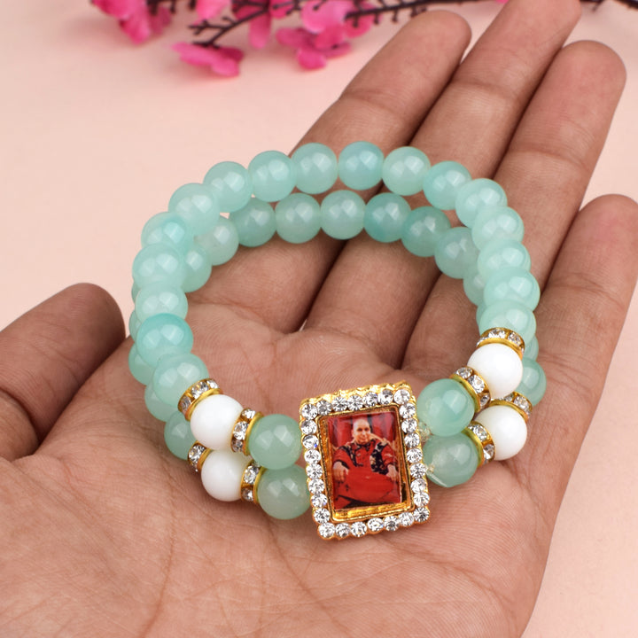 Cyan Green Beaded Guru Ji Maharaj Swaroop Bracelet | Satvikstore.in – satvikstore.in