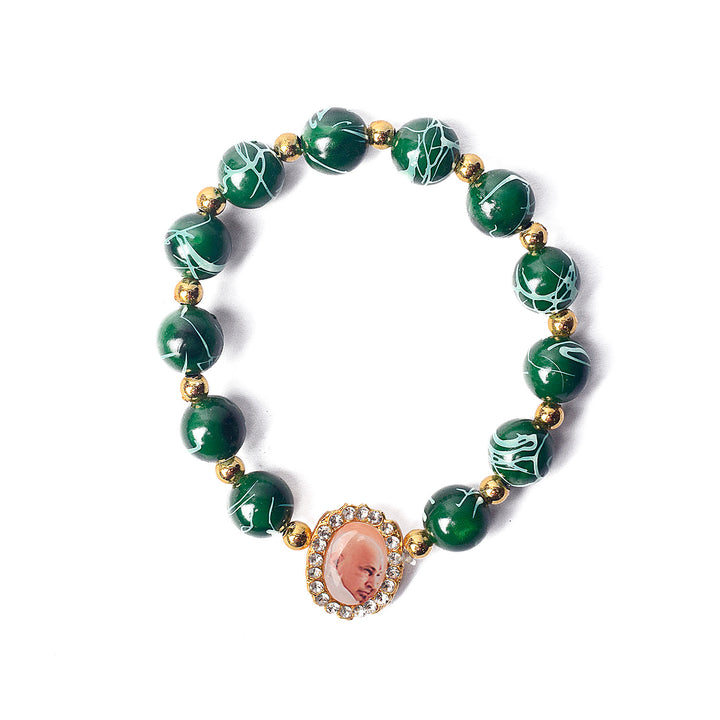 • Item Name: Dark Green Round Pearl Bracelet with Jai Guruji Swaroop Handmade Bracelets for Men and Women