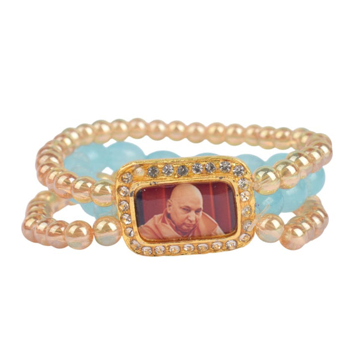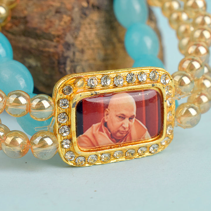 Buy Online | Golden Clear Baby Blue Triple Layer Guruji Swaroop Bracelet | satvikstore.in