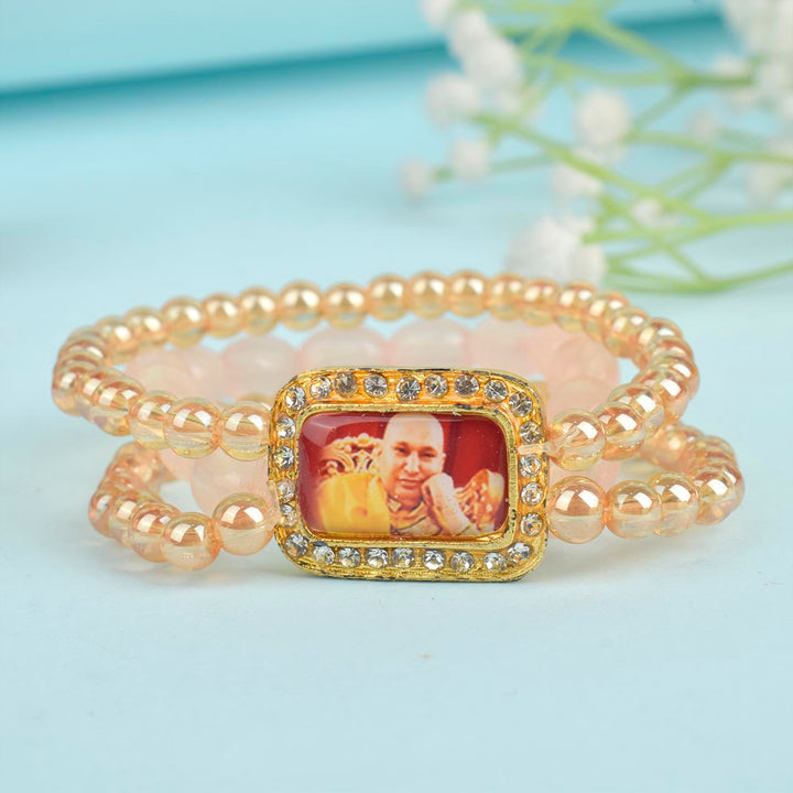 Buy Online | Golden Clear Pink Triple Layer Guruji Swaroop Bracelet | satvikstore.in