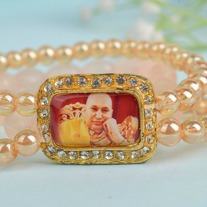 golden clear guruji bracelet | triple layer bracelet | pink beads bracelet | pastel guruji bracelet | elegant guruji swaroop bracelet | stylish daily wear bracelet | guruji bracelet for men and women | spiritual bracelet india | jai guruji bracelet | handmade spiritual jewellery | pooja return gift | satvikstore bracelet | romantic spiritual jewellery | multi layer guruji bracelet | graceful spiritual bracelet | soft pink bracelet | india spiritual brand