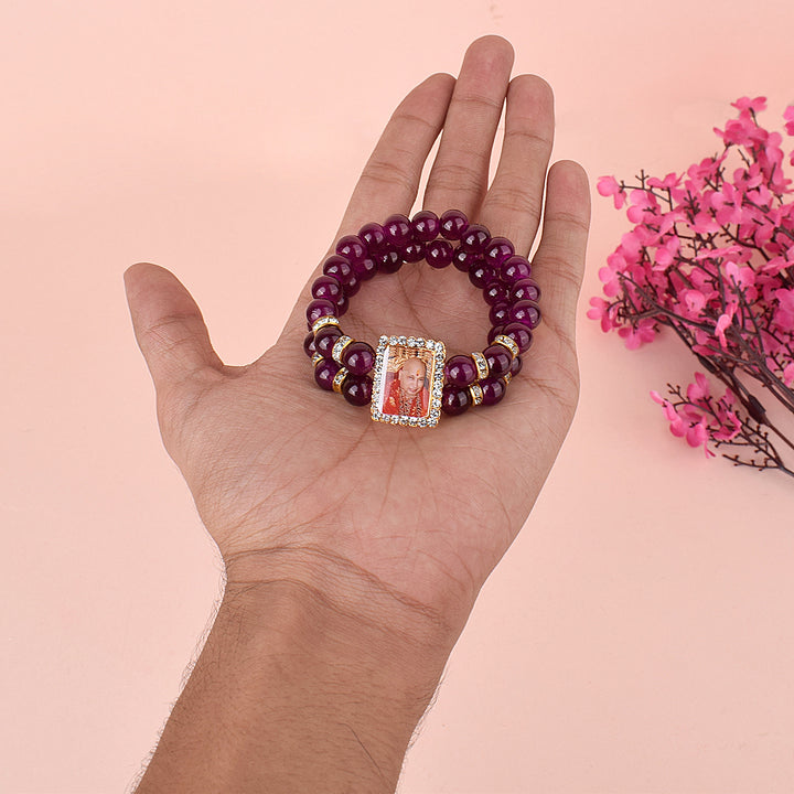 • Item Name: Purple Round Pearl Bracelet with Jai Guruji Swaroop Handmade Bracelets for Men and Women