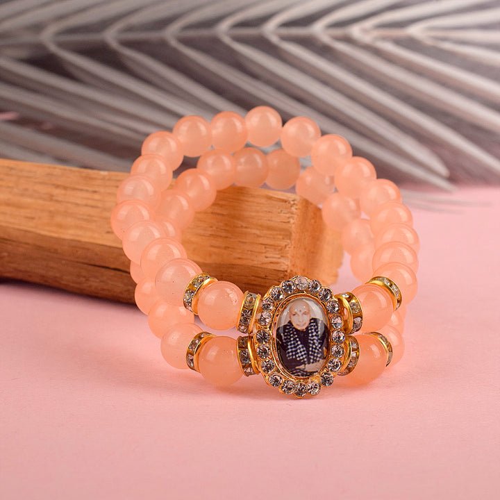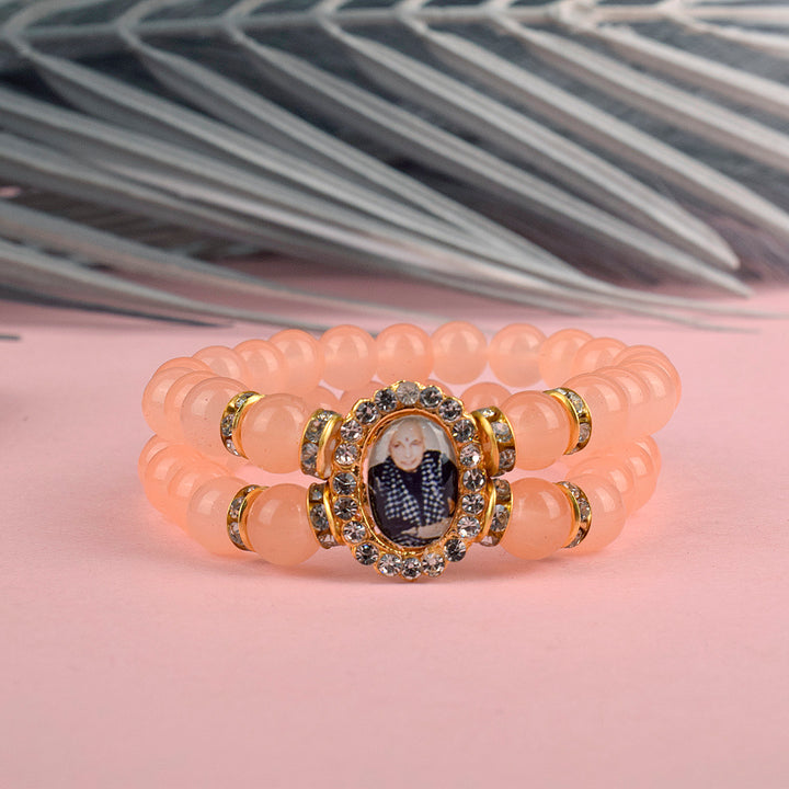 Peach Beaded Guru Ji Maharaj Handmade Bracelets for Men and Women