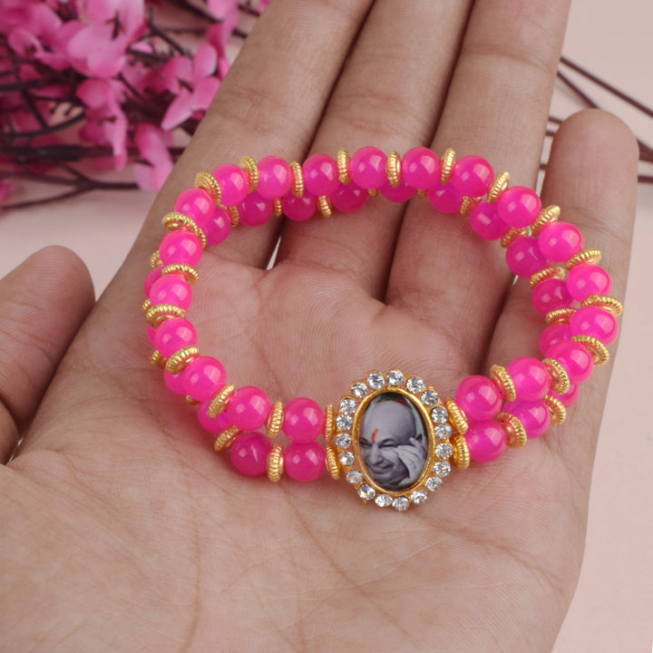Pink Beaded Guru Ji Maharaj Handmade Bracelets for Men and Women