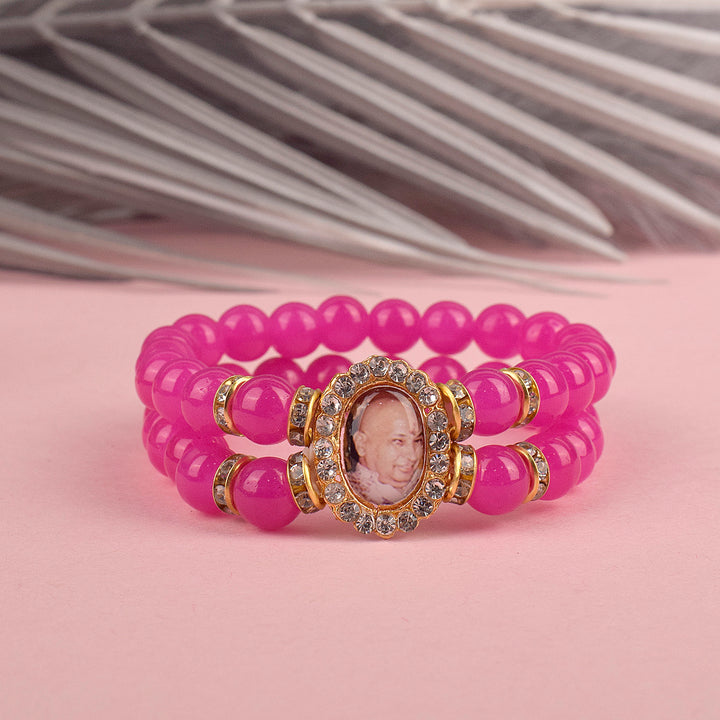 Pink Beaded Guru Ji Maharaj Handmade Bracelets for Men and Women
