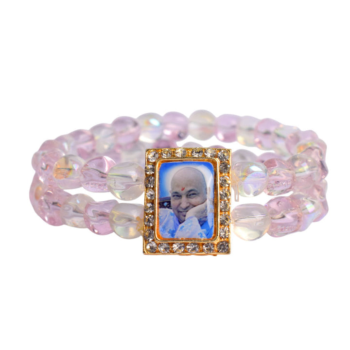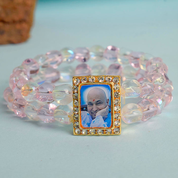 Buy Online | Pink Clear Double Layer Guruji Swaroop Bracelet | satvikstore.in