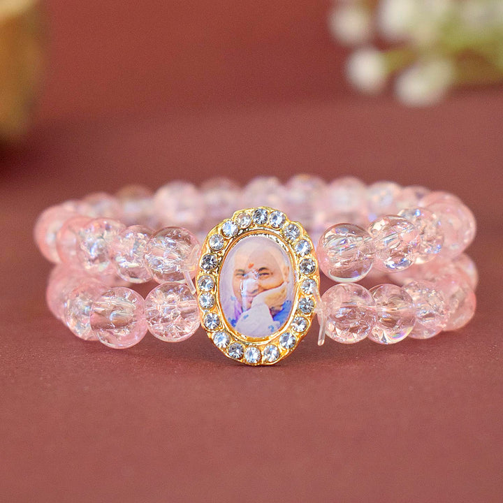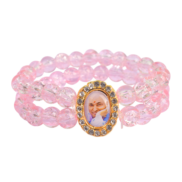 Pink Shiny Beads Double Layer Guruji Swaroop Bracelet