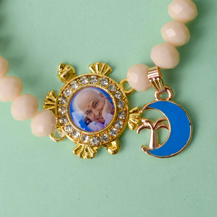 guruji bracelet with charm | coloured guruji bracelet | guruji swaroop bracelet | spiritual charm bracelet | handmade bracelet for pooja | bracelet for satsang | devotional guruji bracelet | daily wear bracelet india | satvikstore guruji bracelet | multicolour charm bracelet | spiritual gift india