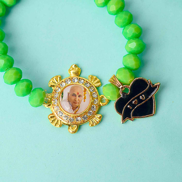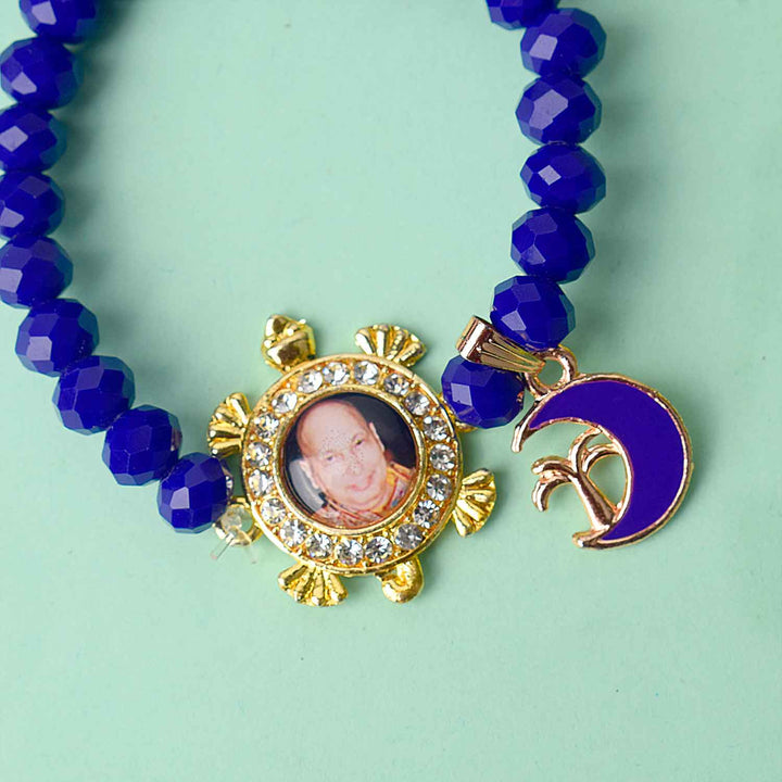 Our Guruji bracelet is a tangible symbol of divine connection. Crafted with care and reverence, it is designed to be worn close to your heart, serving as a constant reminder of Guruji's presence. The bracelet is adorned with sacred symbols and gemstones that hold spiritual significance, channeling positive energy and protection.