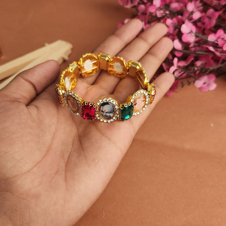 Our Guruji bracelet is a tangible symbol of divine connection. Crafted with care and reverence, it is designed to be worn close to your heart, serving as a constant reminder of Guruji's presence. The bracelet is adorned with sacred symbols and gemstones that hold spiritual significance, channeling positive energy and protection.