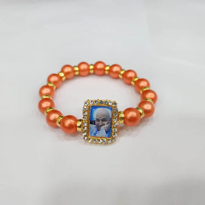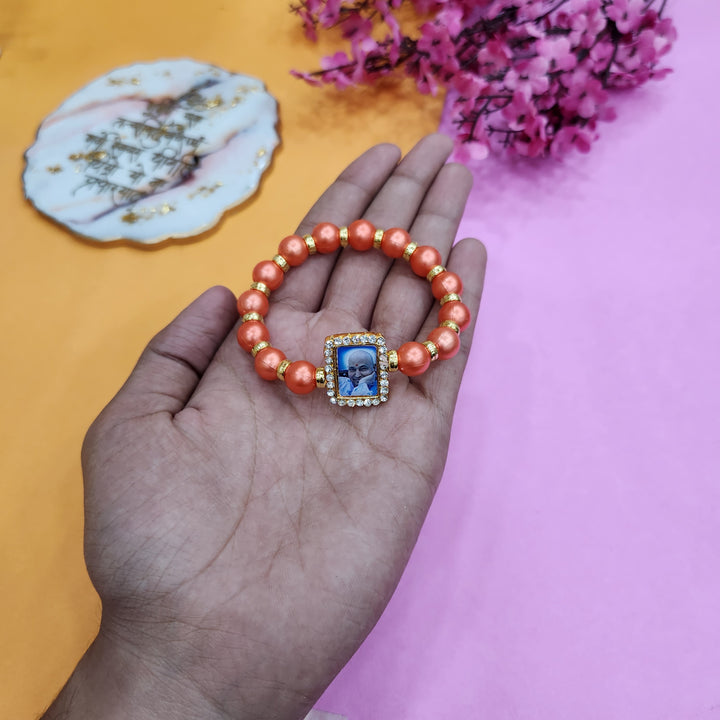 Round Pearl Bracelet Dark Orange with Jai Guruji Swaroop Handmade Bracelets for Men and Women