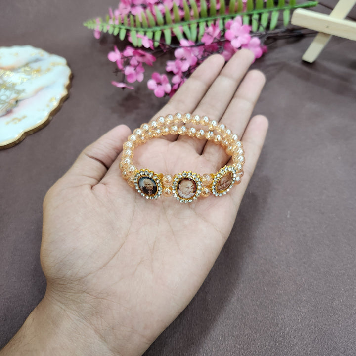 • Item Name: Round Pearl Bracelet with Jai Guruji Swaroop Handmade Bracelets for Men and Women