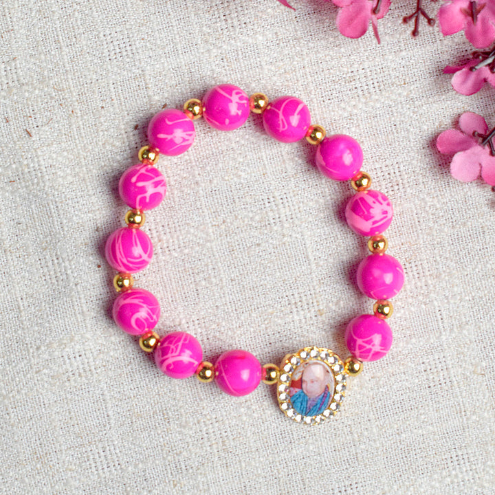 • Item Name: Round Pearl Bracelet with Jai Guruji Swaroop Handmade Bracelets for Men and Women