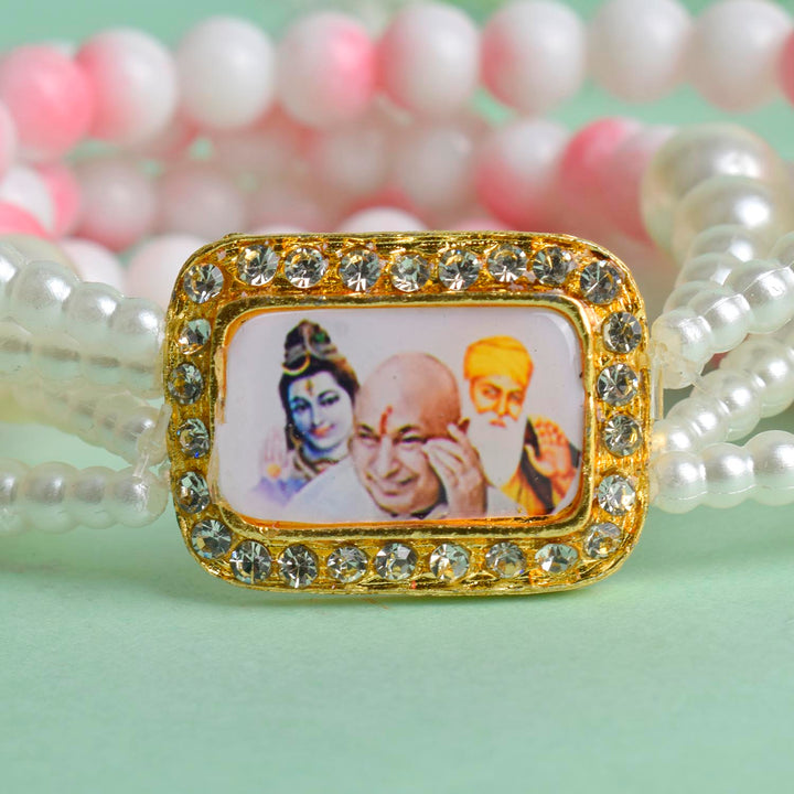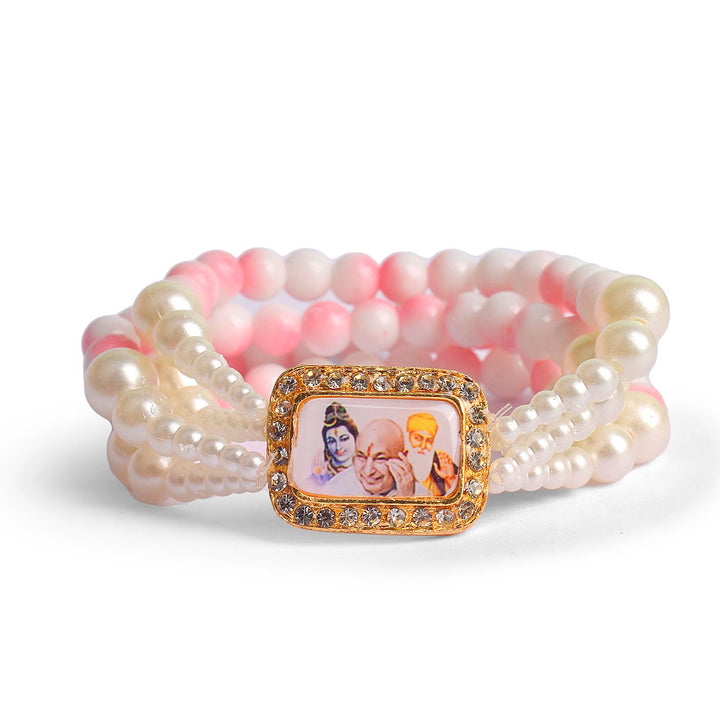 Buy Online | White & Pink Marble White Pearl Guruji Swaroop Bracelet | satvikstore.in
