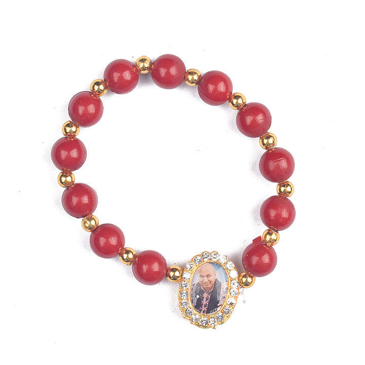 Guruji Stone Bracelets removes negative energy and and uplift the spiritual, mental and physical Health. Easy to wear, Skin Friendly. You can Gift this Beautiful Beads Bracelets to your family, friends, relative, neighbor on religious occasion like : pooja, kirtan, return gift idea, housewarming, home inauguration, Puja and other. Very beautiful bracelet made of artificial ceramic stones with smooth round finish, each bracelet is handpicked for quality check, Jai Guruji is Photo also there in the bracelet. This is matches trend with tradition. Proudly Made in India for Our Devotees.