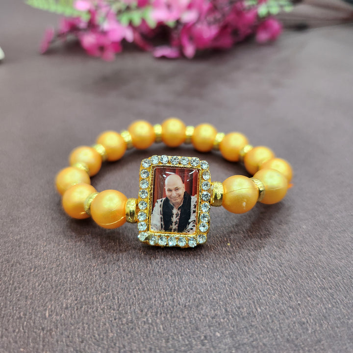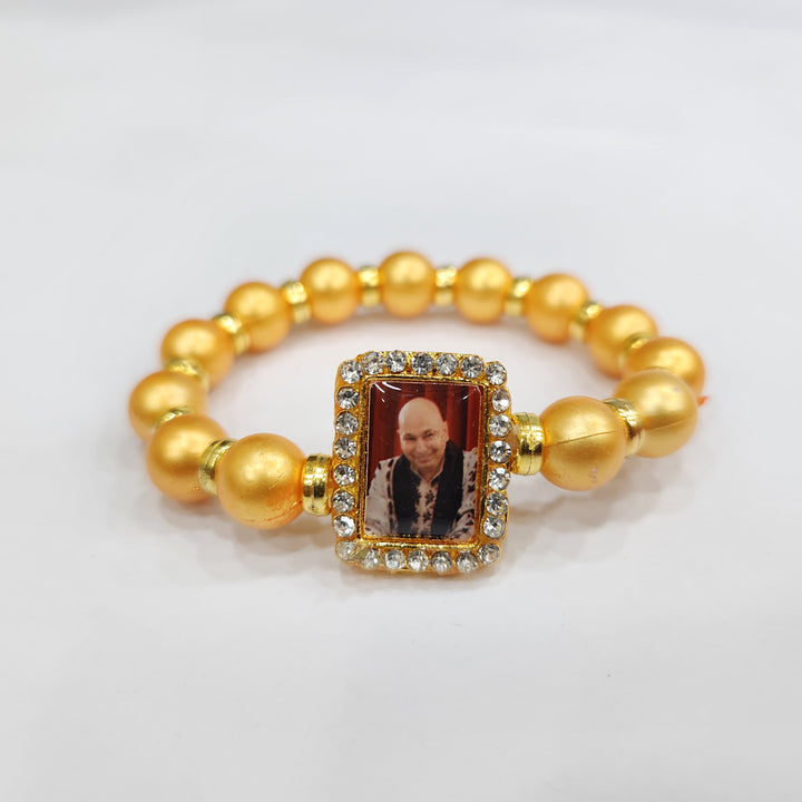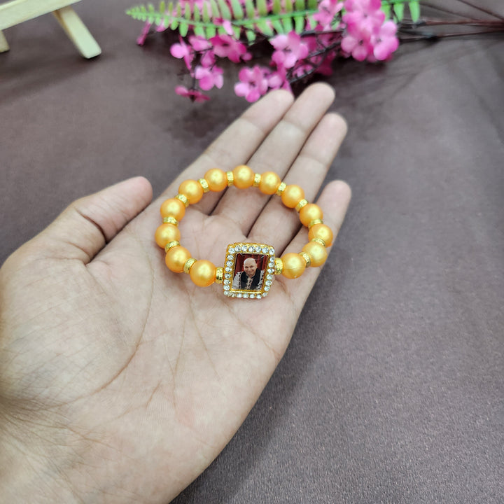 • Item Name: Golden Yellow Round Pearl Bracelet with Jai Guruji Swaroop Handmade Bracelets for Men and Women.