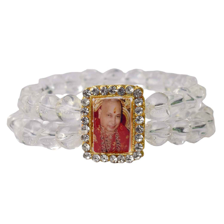 Our Guruji bracelet is a tangible symbol of divine connection. Crafted with care and reverence, it is designed to be worn close to your heart, serving as a constant reminder of Guruji's presence. The bracelet is adorned with sacred symbols and gemstones that hold spiritual significance, channeling positive energy and protection.