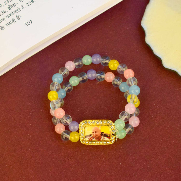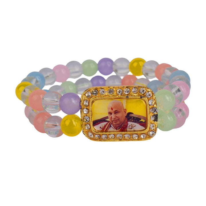Our Guruji bracelet is a tangible symbol of divine connection. Crafted with care and reverence, it is designed to be worn close to your heart, serving as a constant reminder of Guruji's presence. The bracelet is adorned with sacred symbols and gemstones that hold spiritual significance, channeling positive energy and protection.