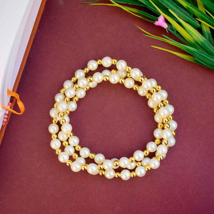 Buy Online | Jai Guruji Swaroop Mala – White & Golden Beads | Satvikstore.in – satvikstore.in
