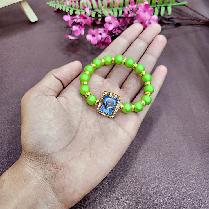 Jai Guruji Swaroop Lime Green Round Pearl Bracelet | Satvikstore.in – satvikstore.in