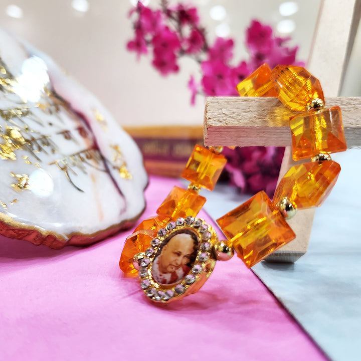 Orange Beaded Guru Ji Maharaj Handmade Bracelets for Men and Women
