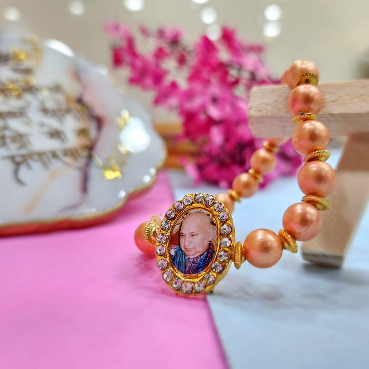 Orange Round Pearl Bracelet with Jai Guruji Swaroop