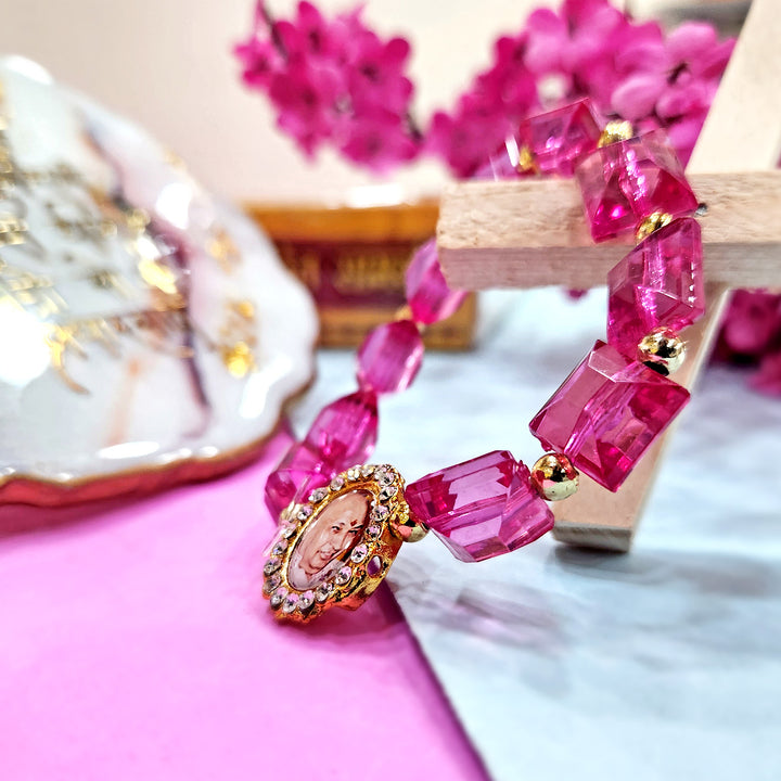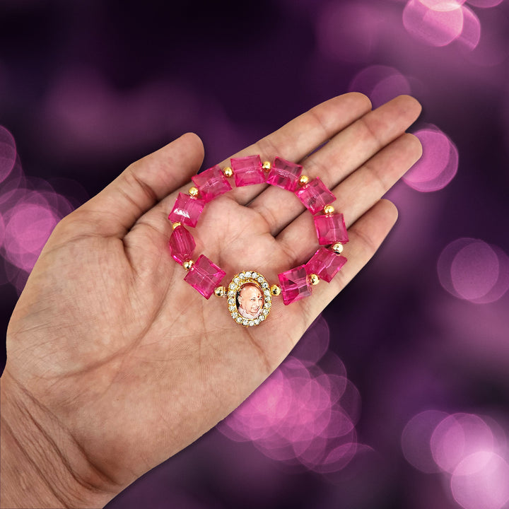 Pink Beaded Guru Ji Maharaj Handmade Bracelets for Men and Women