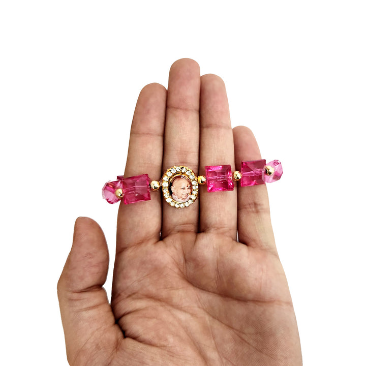 • Item Name: Pink Beaded Guru Ji Maharaj Handmade Bracelets for Men and Women