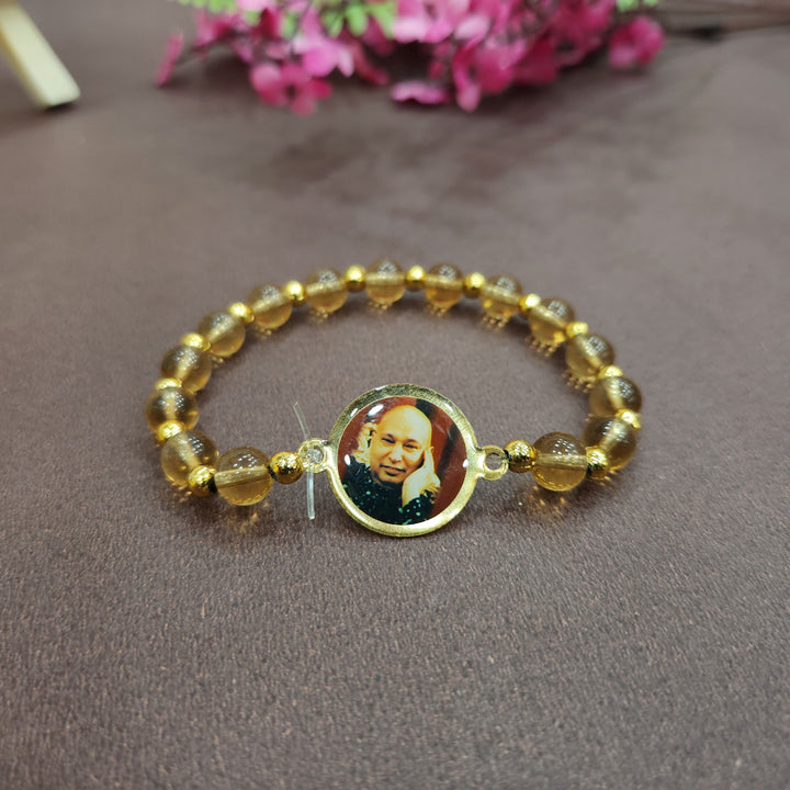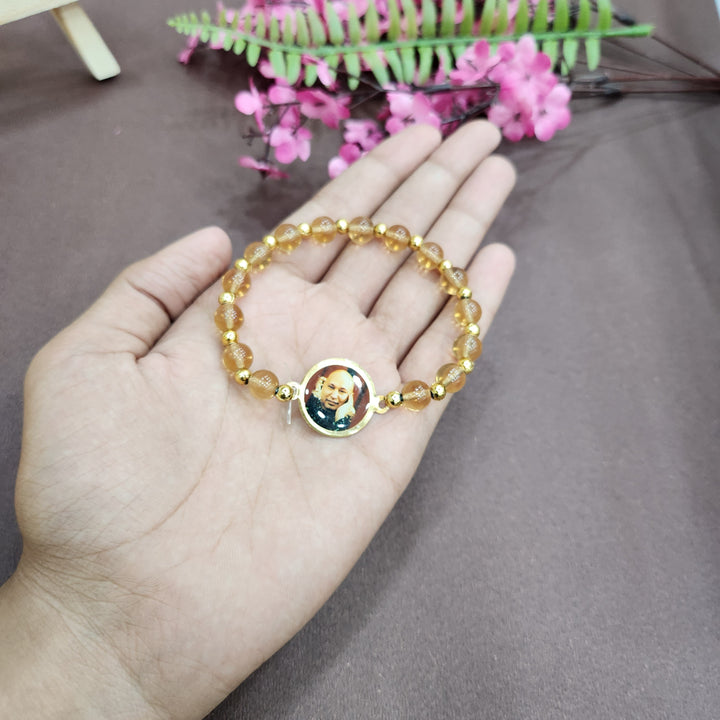 Our Guruji bracelet is a tangible symbol of divine connection. Crafted with care and reverence, it is designed to be worn close to your heart, serving as a constant reminder of Guruji's presence. The bracelet is adorned with sacred symbols and gemstones that hold spiritual significance, channeling positive energy and protection.
