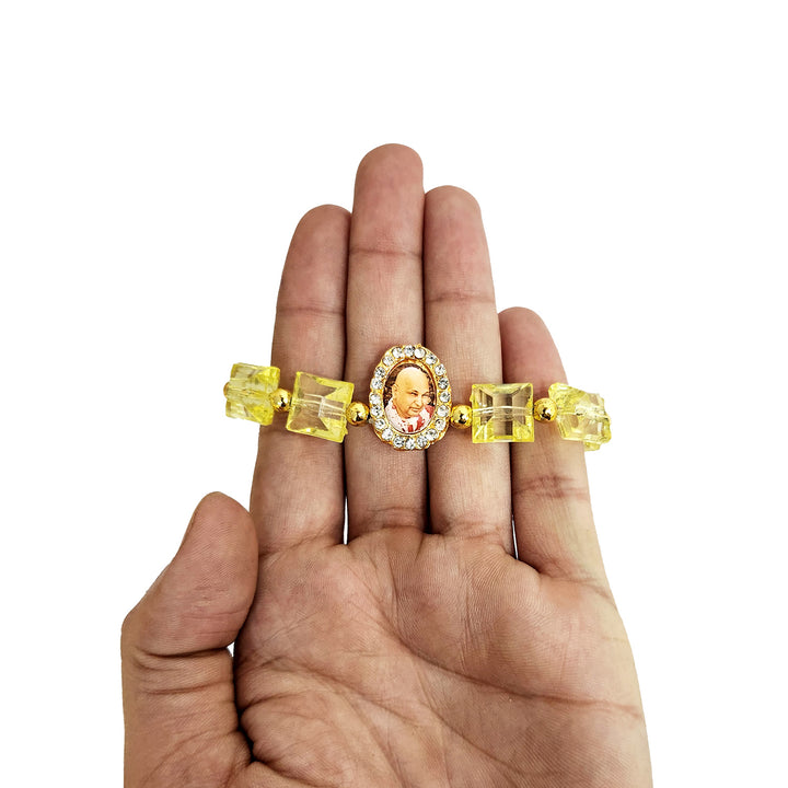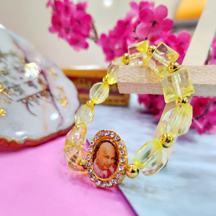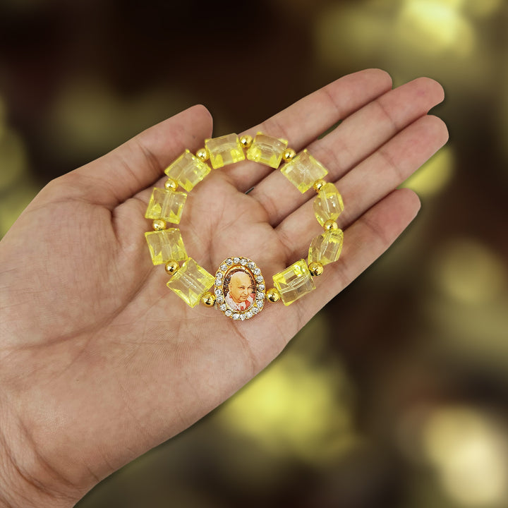 Yellow Beaded Guru Ji Maharaj Handmade Bracelets for Men and Women