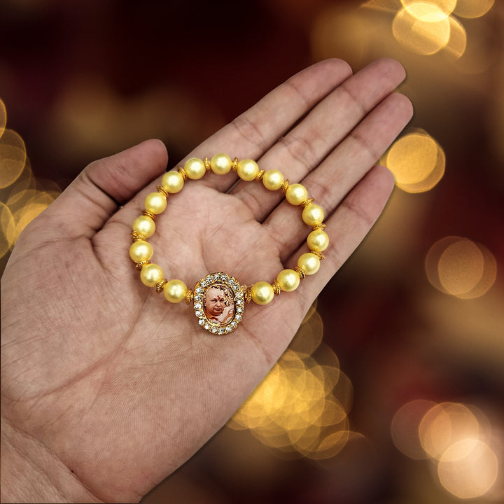 Yellow Beaded Guru Ji Maharaj Handmade Bracelets for Men and Women