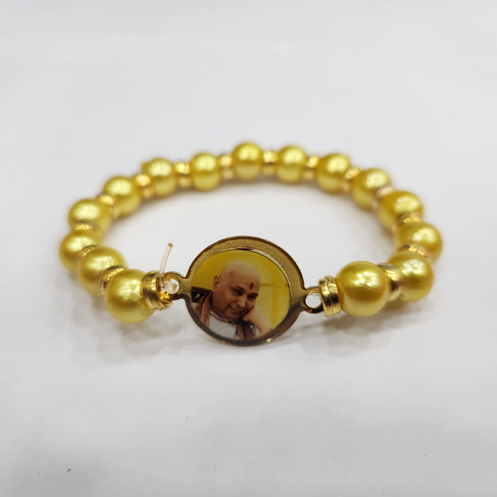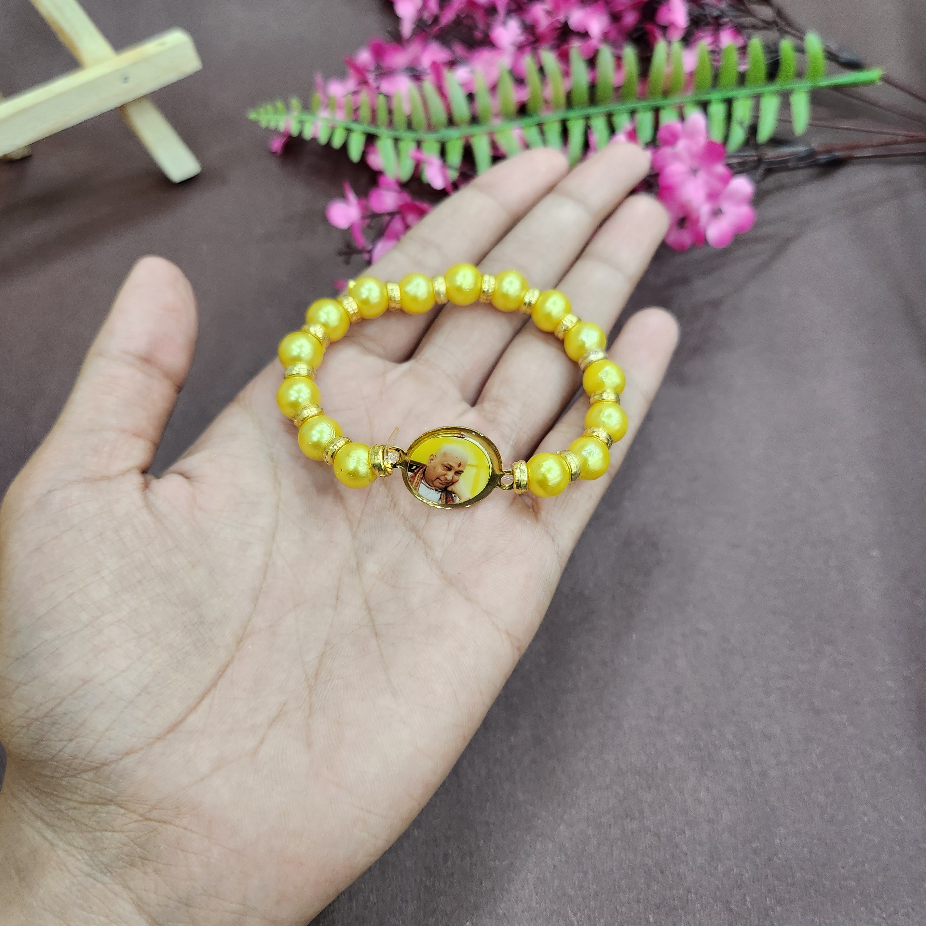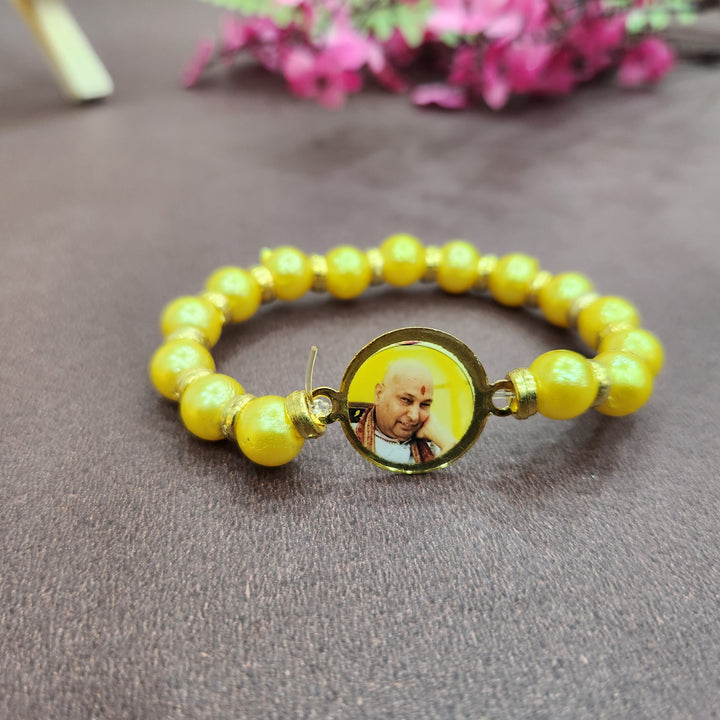 • Item Name: Yellow Round Pearl Bracelet with Jai Guruji Swaroop Handmade Bracelets for Men and Women.