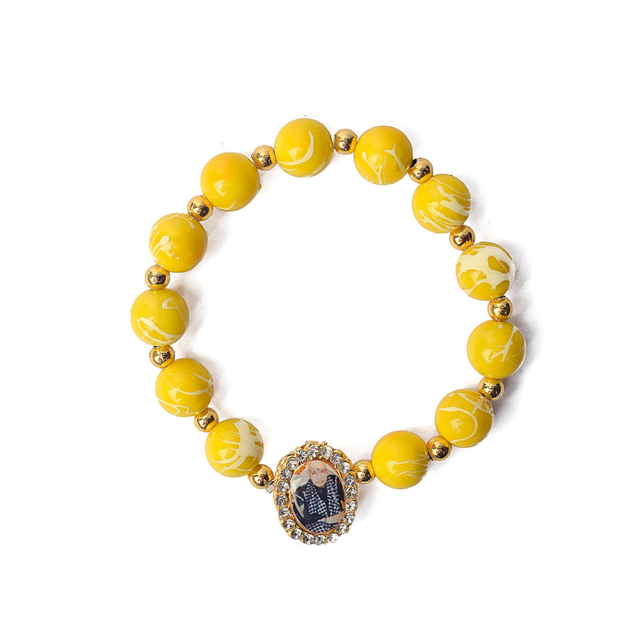 Yellow Round Pearl Bracelet with Jai Guruji Swaroop Handmade Bracelets for Men and Women