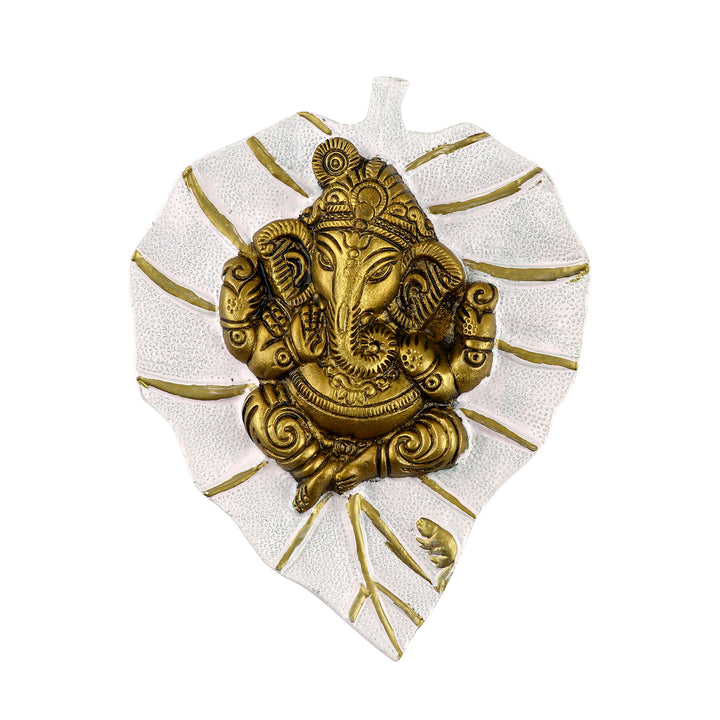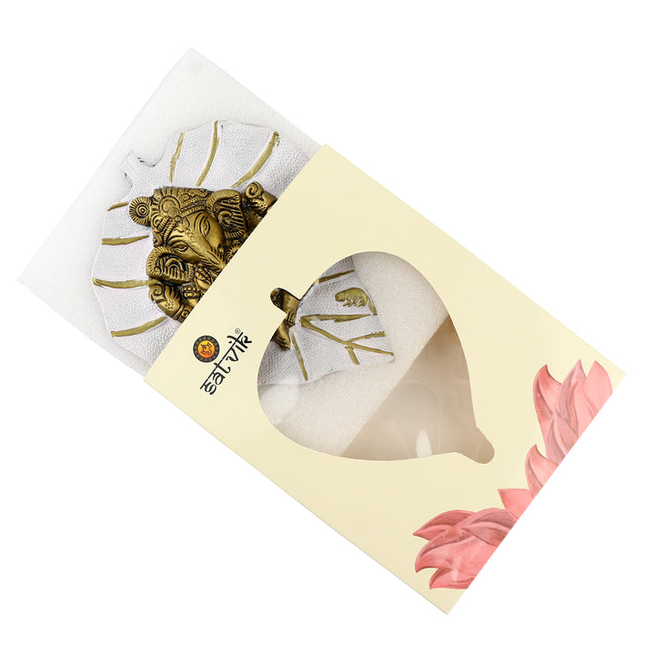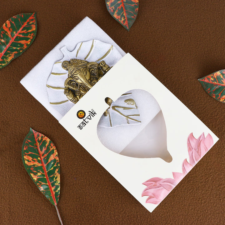 Buy Lord Ganesh on Leaf Patta Wall Hanging White | Satvikstore.in – satvikstore.in