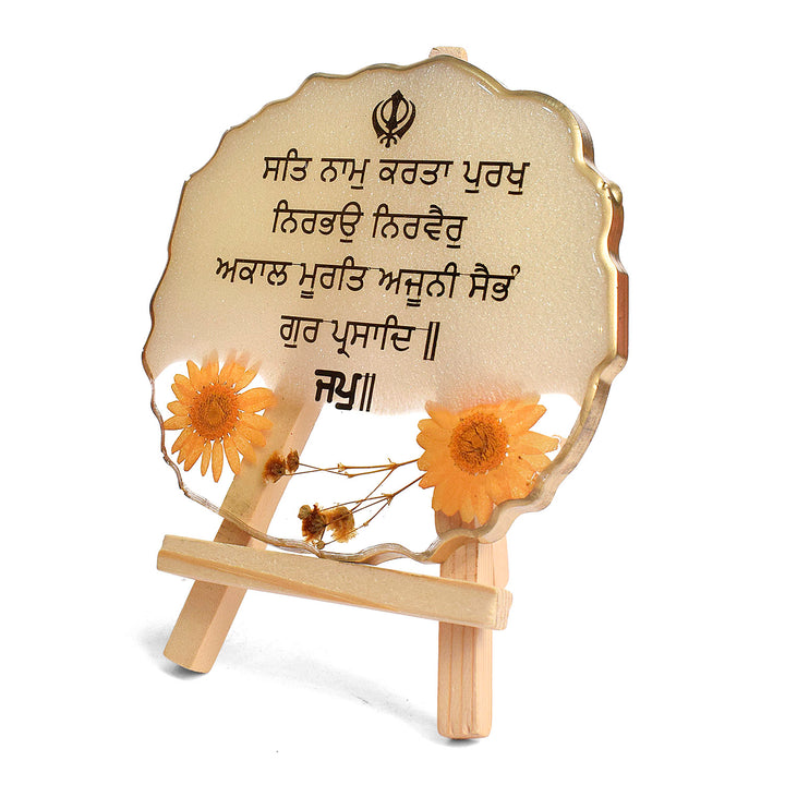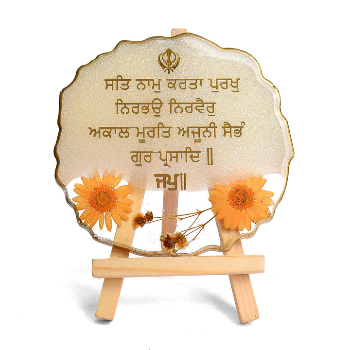 Ik Onkar mantra frame | Epoxy Ik Onkar decor | White frame mantra display | Sacred Ik Onkar wall decor | Spiritual epoxy frame | Mantra with stand | Sikh spiritual decor | Epoxy resin Ik Onkar |