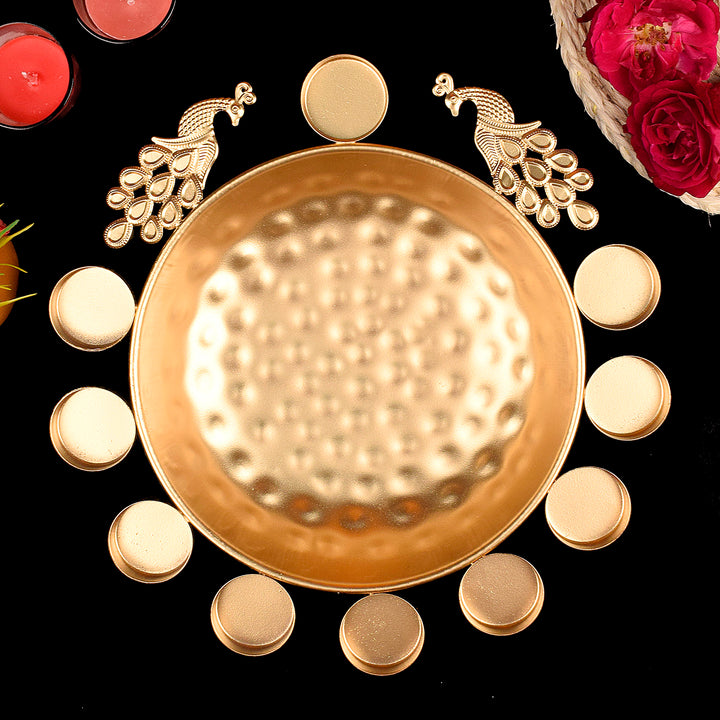 Decorative Metal Peacock Flower Urli with Tea Light (Pack of 3)