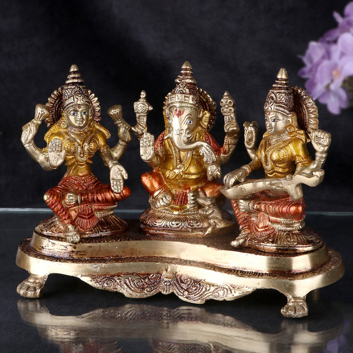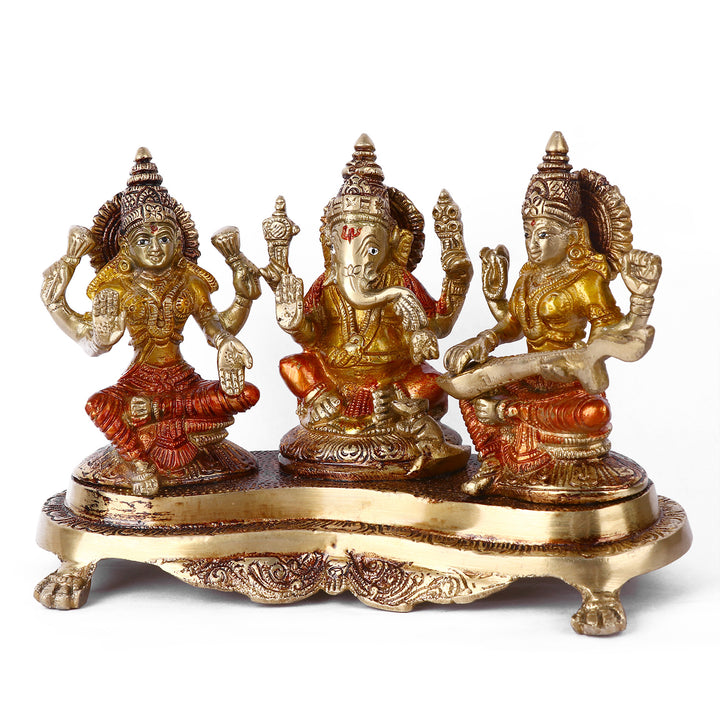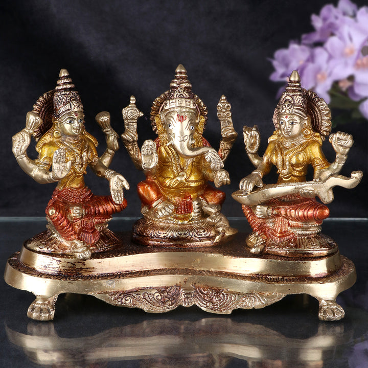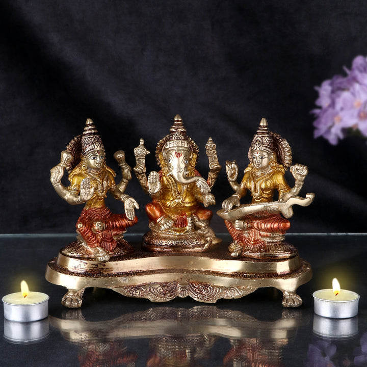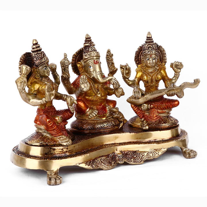 Brass Lakshmi Ganesh Saraswati Idol | Puja Room Decor | Best Brass Gift Item for Housewarming | Brass Lakshmi Ganesha with Saraswati Idol | Brass Idol | Antique Finish Brass Statue | Exclusive Brass Statue |