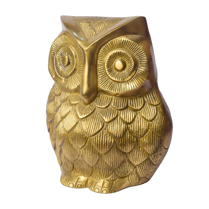 Brass Owl Statue | Lakshmi Vaahan Owl |  Owl Showpiece Brass Statue | Antique Finish Brass Statue | Owl Statue for Home Décor | Brass Engraved Owl |