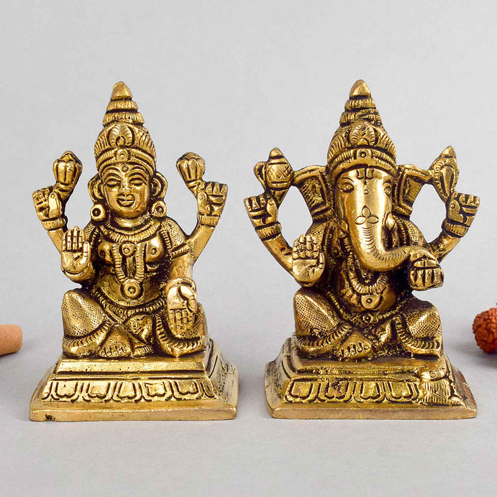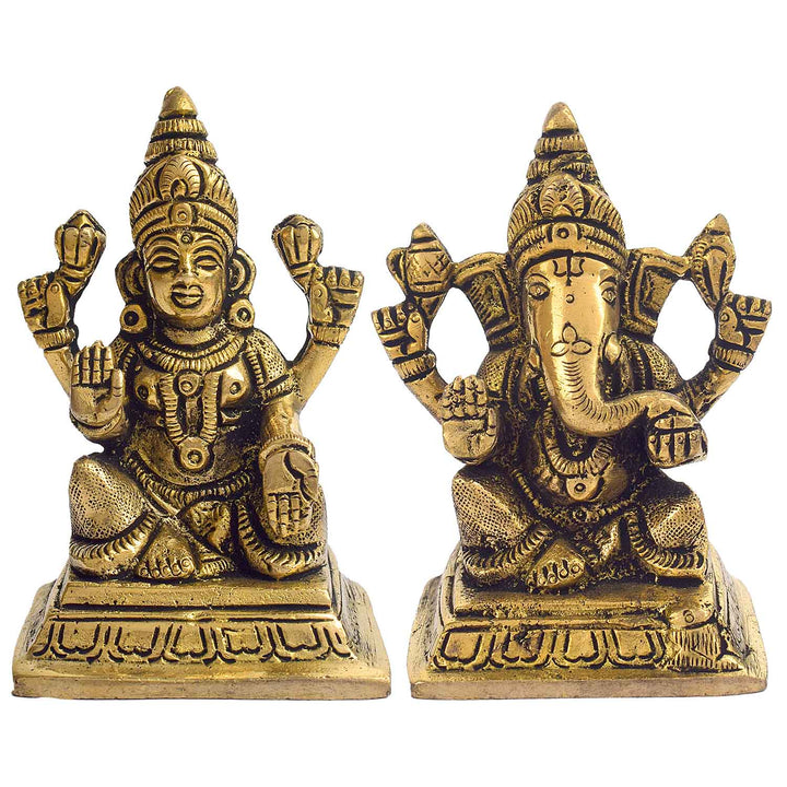 3.4 Inch Sacred Brass Laxmi Ganesh Idol