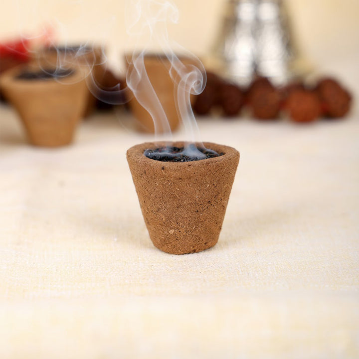 - Chandan Incense Cone: Unveil the calming aroma of pure sandalwood with our Chandan Incense Cone. These cones release a rich and woody scent, ideal for creating a peaceful and meditative environment during your spiritual practices.
