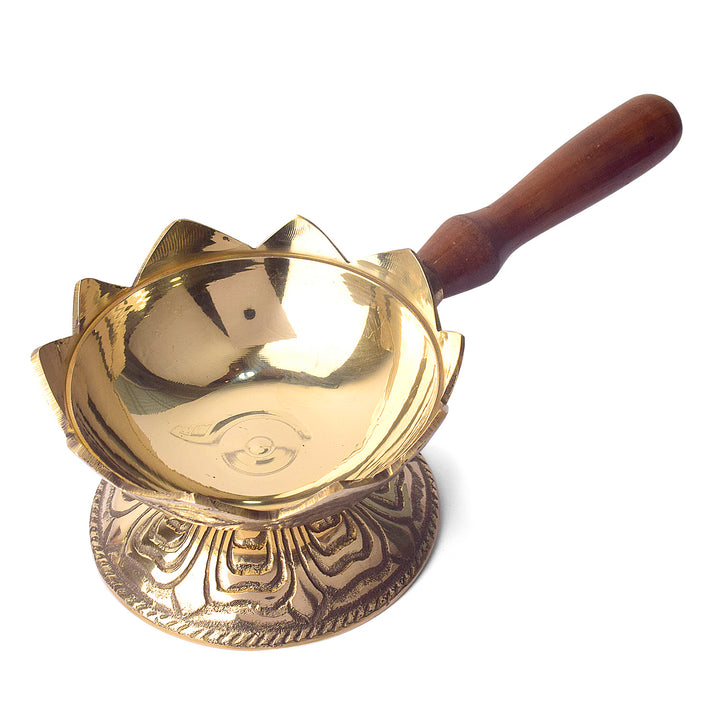 Antique Brass Loban Dingali with Wooden Handle for Pooja and Rituals – satvikstore.in