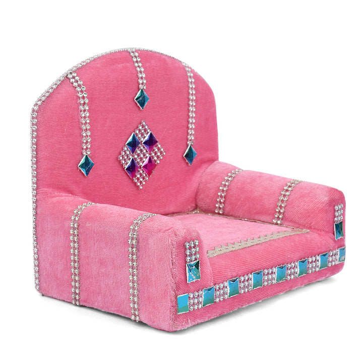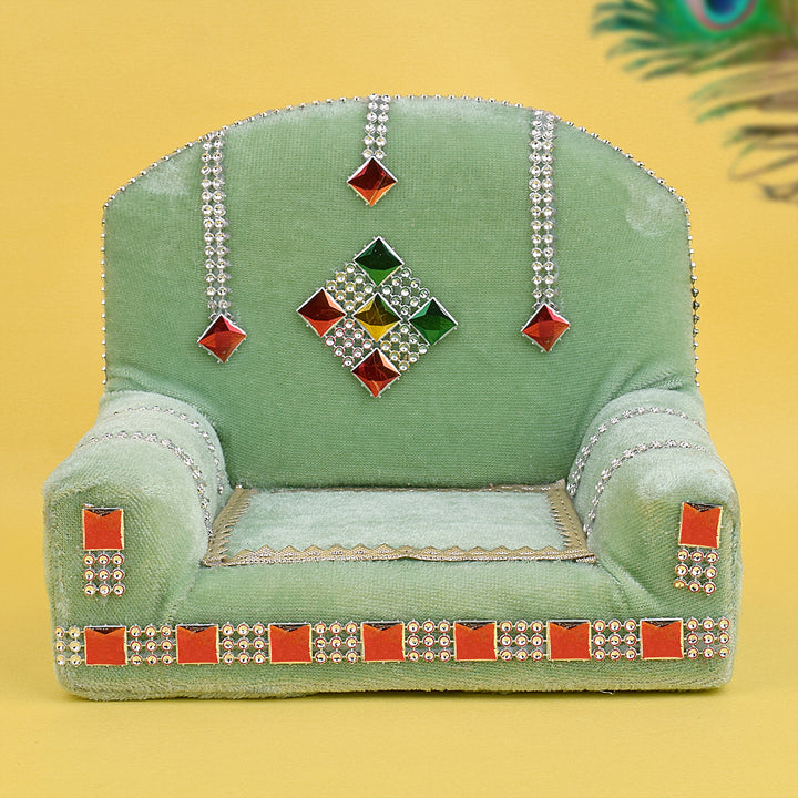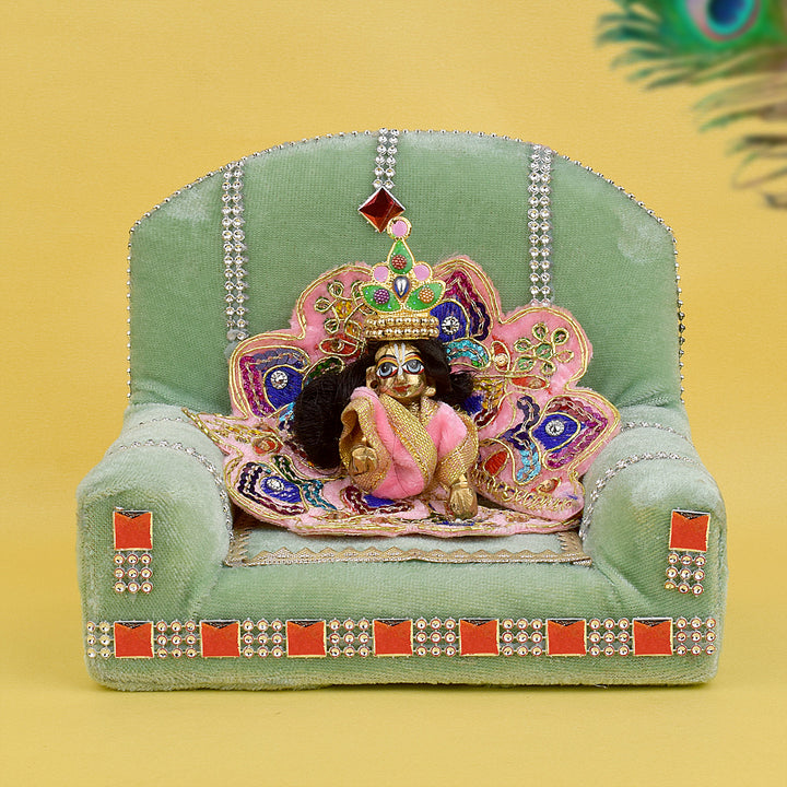 As you place your Laddu Gopal on this sacred throne, watch as the velvet embraces the little lord, showering blessings and grace upon your home. Its charming allure and captivating design make it a true centerpiece of devotion, adding a touch of splendor to your worship space.