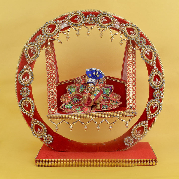 Decorative Laddu Gopal Ji Jhula: Divine Swing (Red)