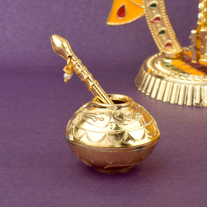 Product Name: Charming Temple Style Laddu Gopal Jhula – Golden Finish Swing