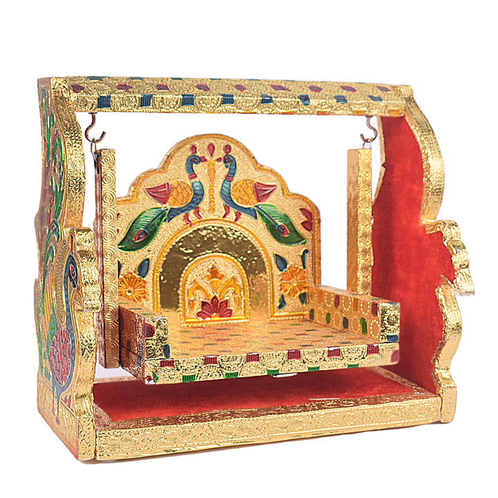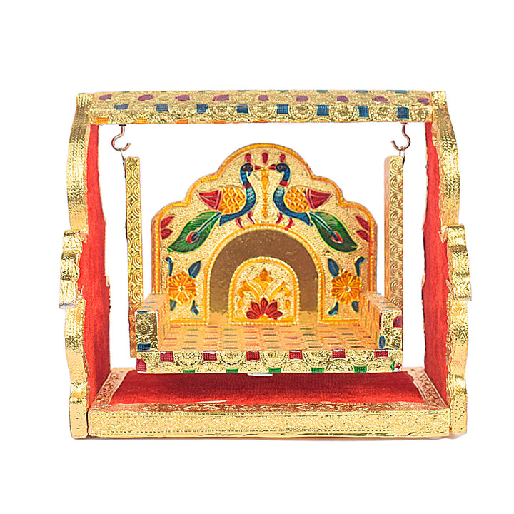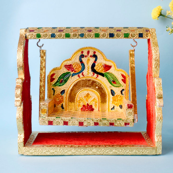 Item Name: Golden Meenakari Peacock Singhasan Jhula for Laddu Gopal