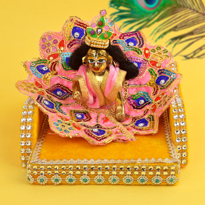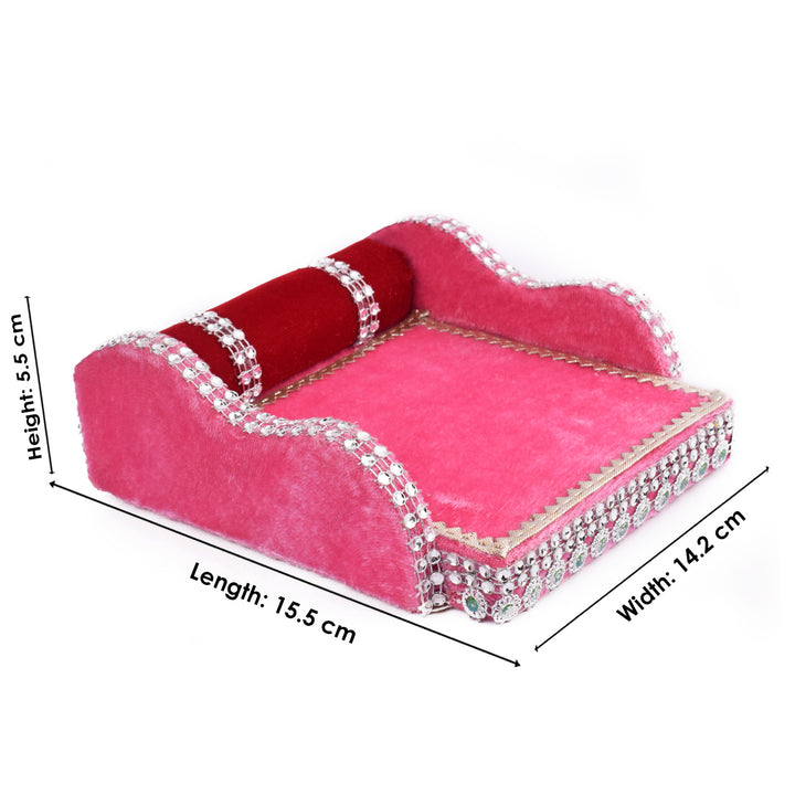 As you place your Laddu Gopal on this sacred throne, watch as the velvet embraces the little lord, showering blessings and grace upon your home. Its charming allure and captivating design make it a true centerpiece of devotion, adding a touch of splendor to your worship space.